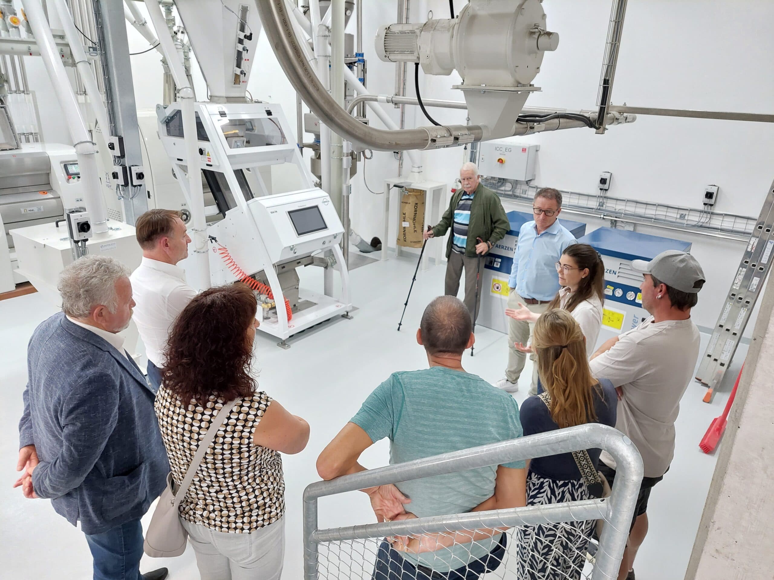 Melissa Baumann führte die Teilnehmenden durch die neuen Produktionsräume: „Die Tage sind gezählt, bis die ersten Mehle für den Markt verarbeitet werden.“